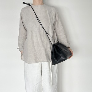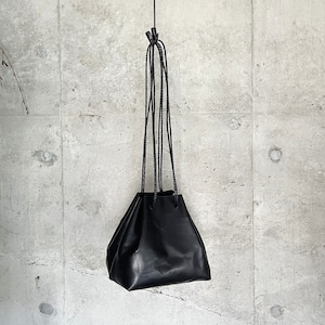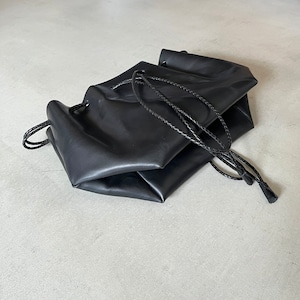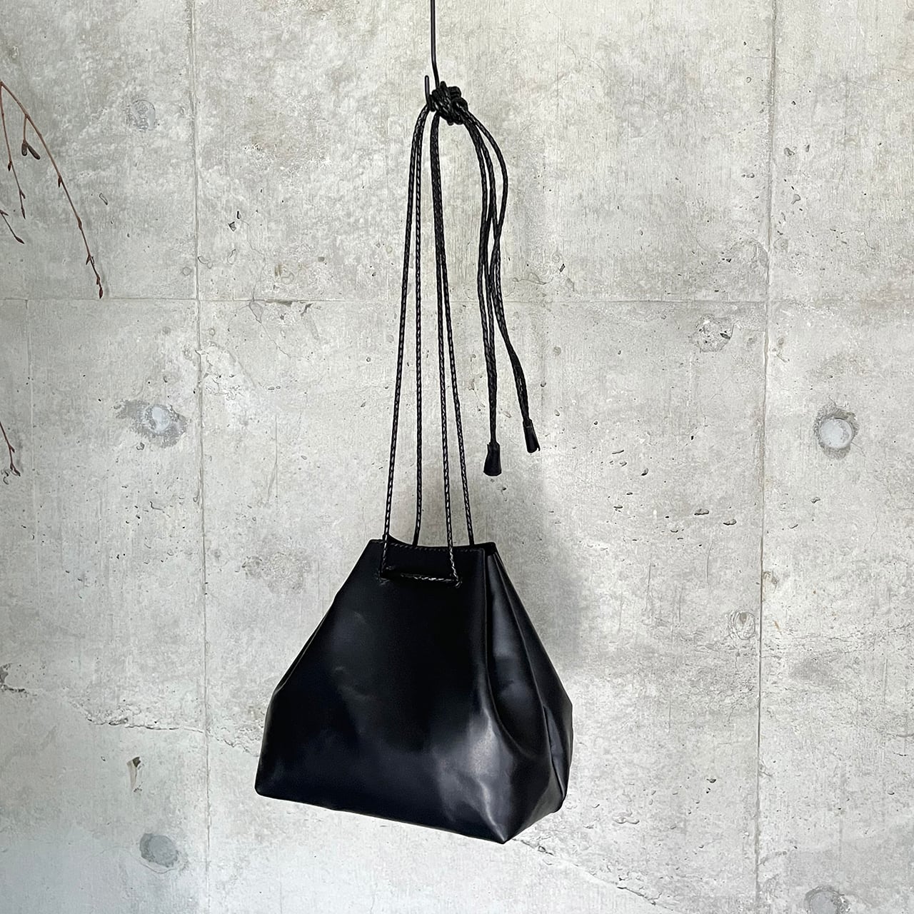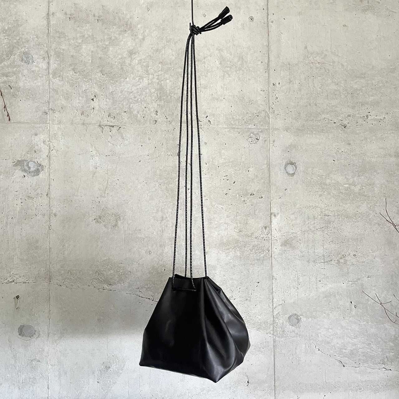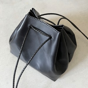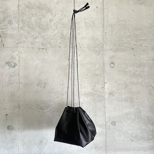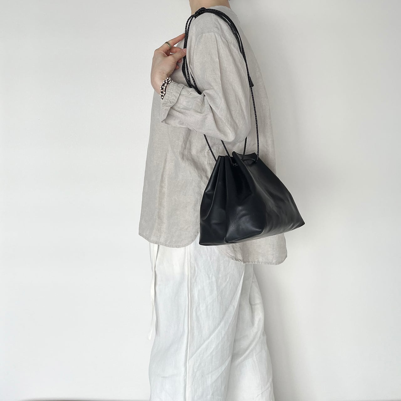 甘さを抑え、すっきりシンプルな四角い巾着ポシェットです。