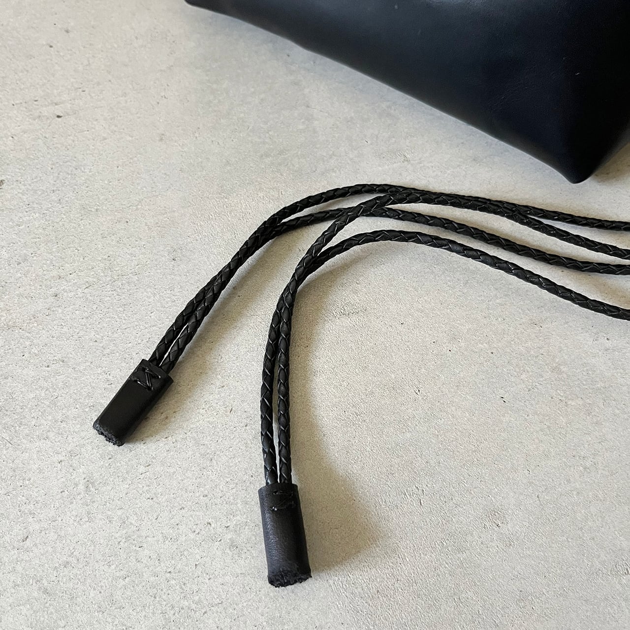 薄くハリのあるタンニンなめしの牛革と編み紐の組み合わせで