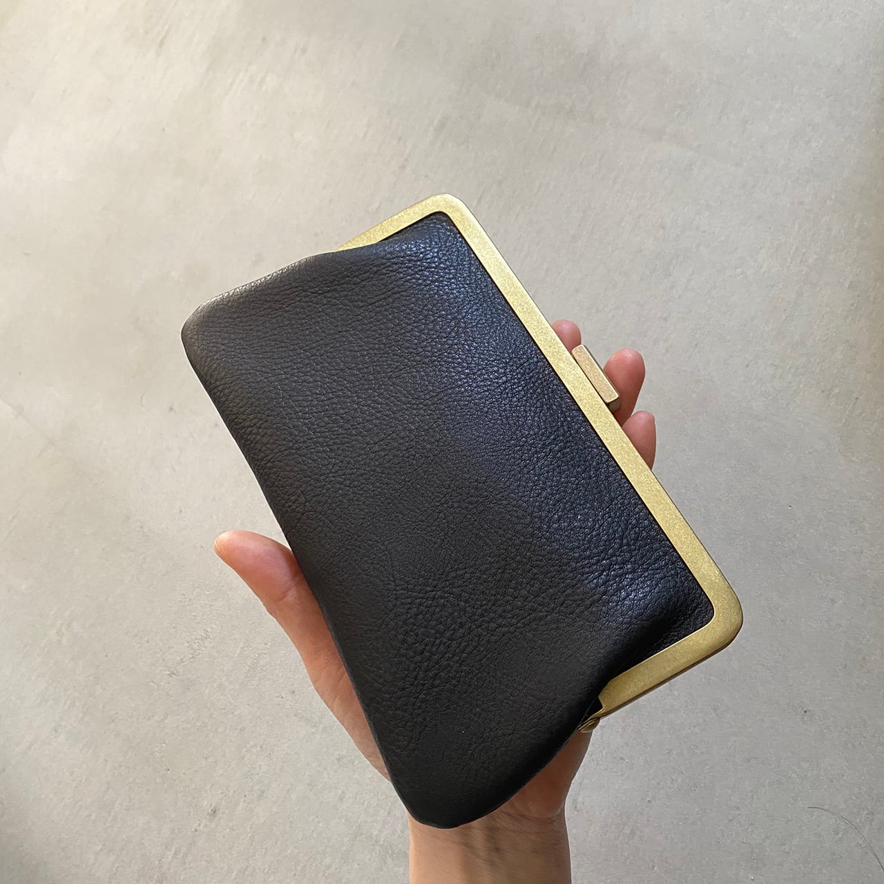 その口金に、自然なシボが美しいタンニン鞣しのしっとりとした牛革を組み合わせました。