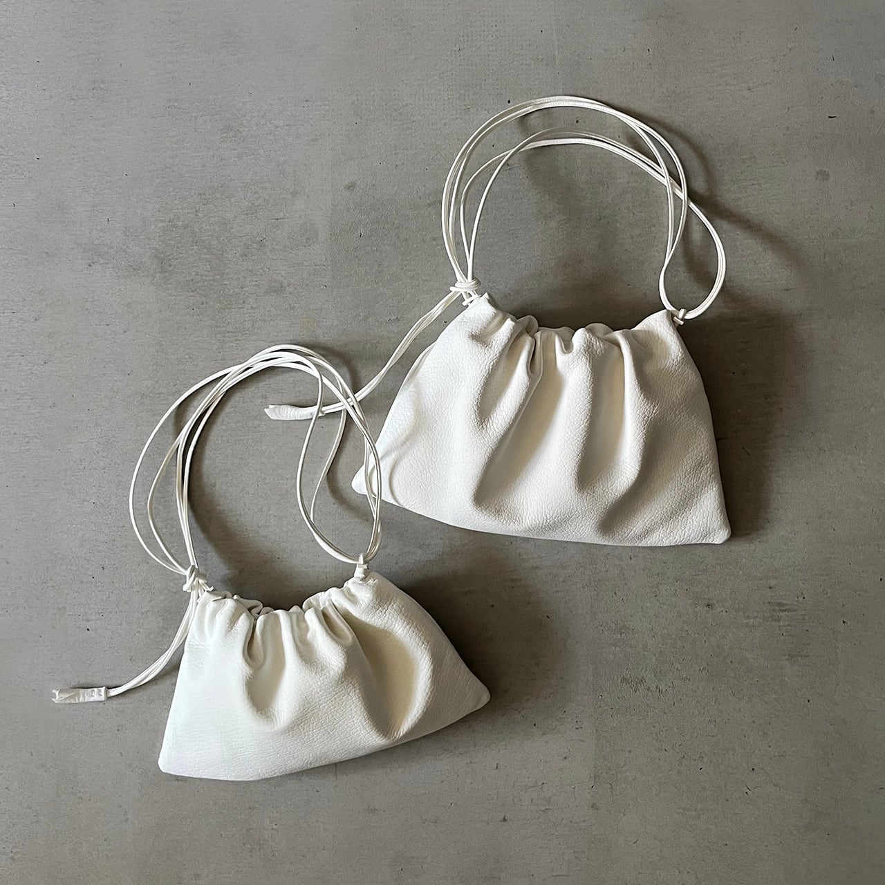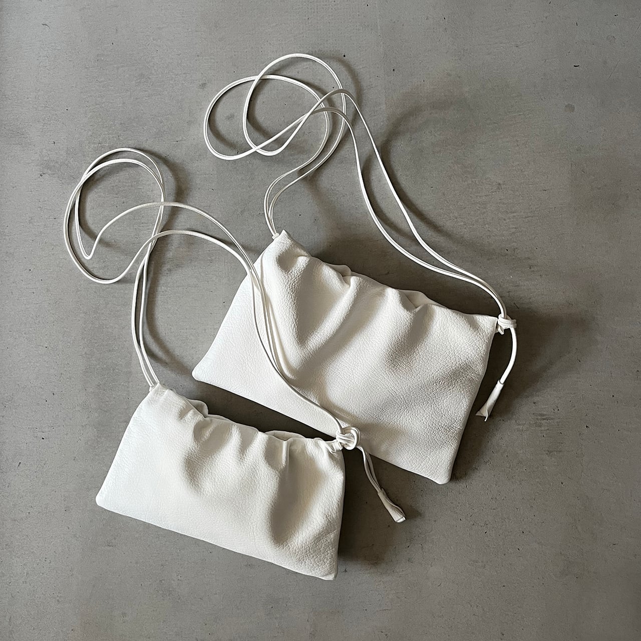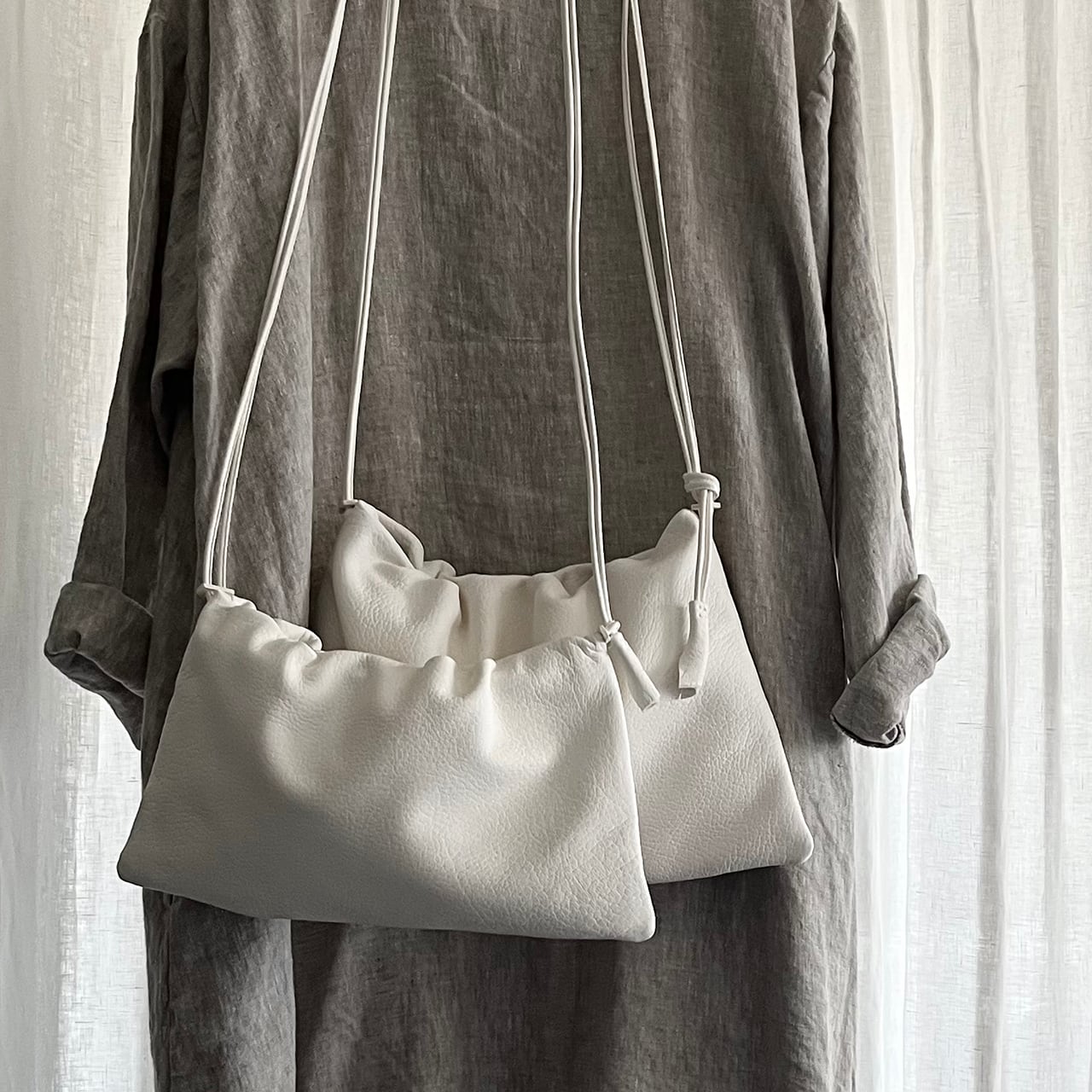 鹿革紐の結ぶ位置を変えて、ポシェットからショルダーバッグまで