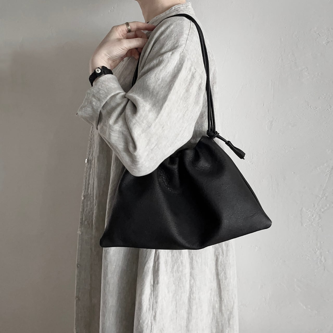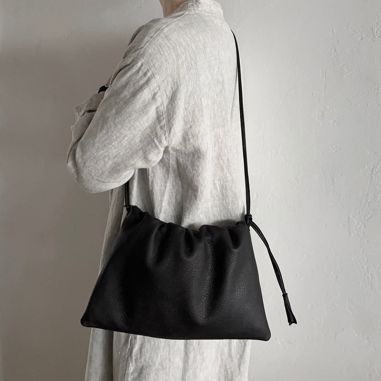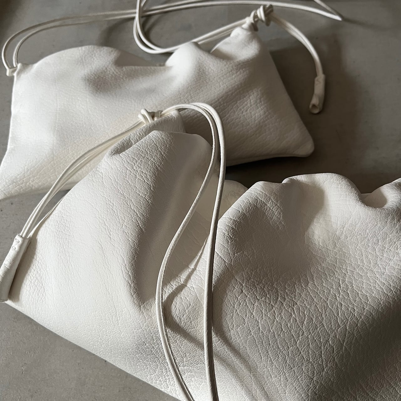 鹿革紐の結ぶ位置を変えて、ポシェットからショルダーバッグまで